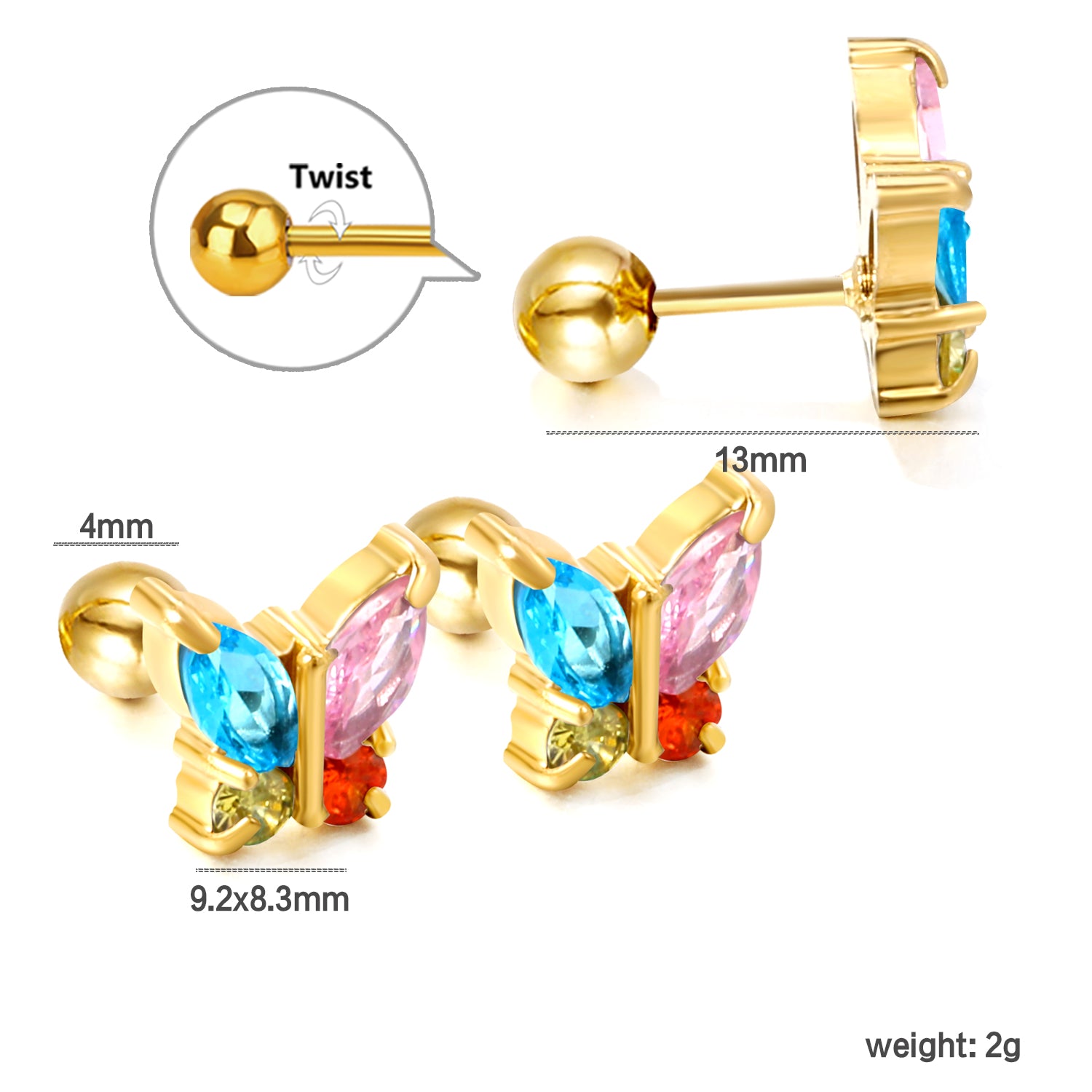 - Screw-back design for a secure, ouch-free fit