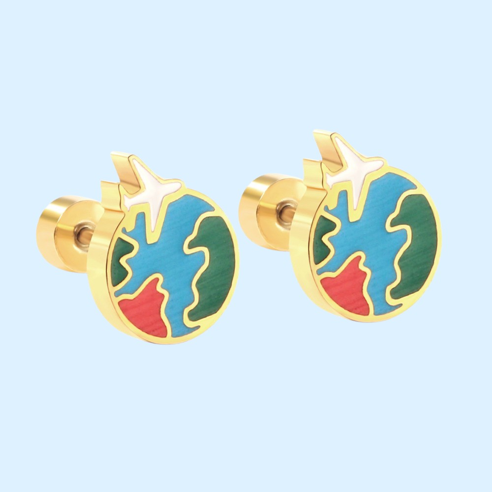 Sky Explorer earrings capture the spirit of adventure with a charming Earth and airplane design, perfect for travel lovers ready to take off!