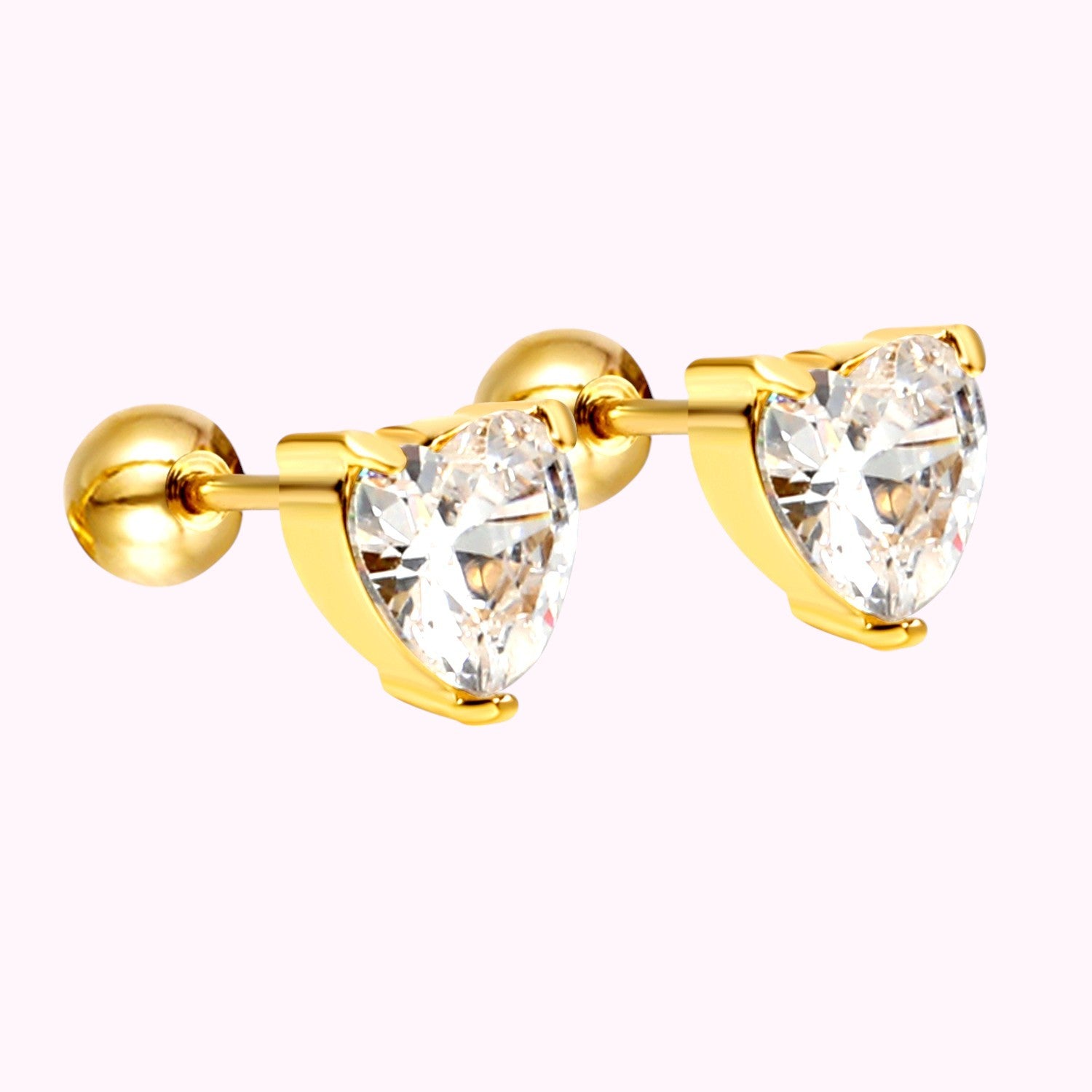 Sparkle Heart earrings feature an elegant gold heart accented with a twinkling diamond, adding a touch of graceful sparkle to your everyday look.